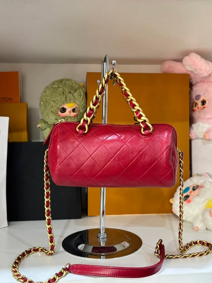 💥Chanel Shiny Lambskin Quilted Fashion Therapy Bowling Bag