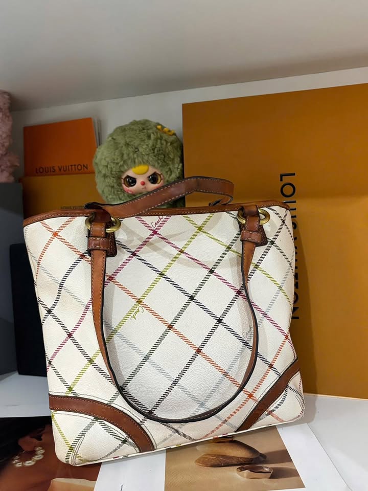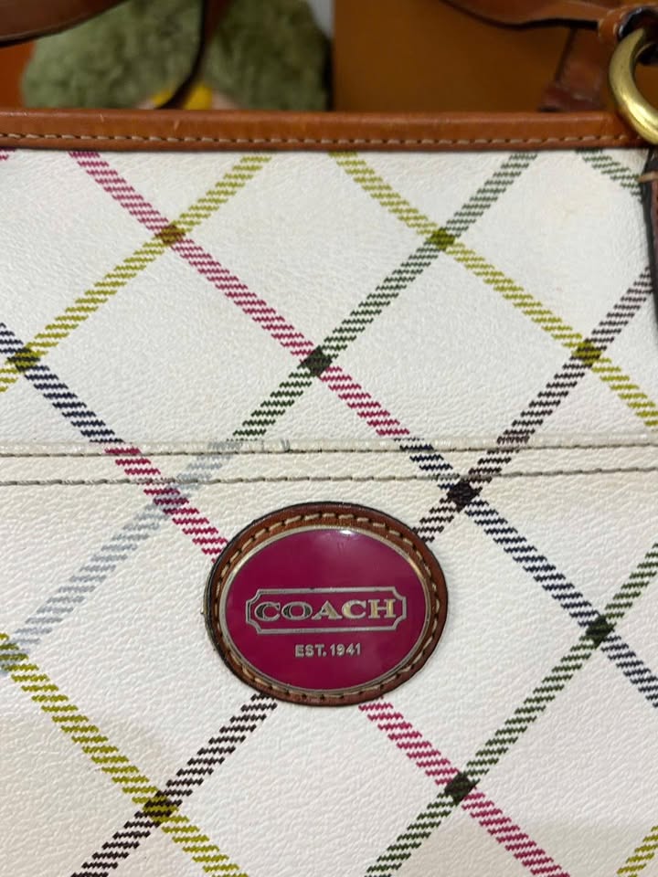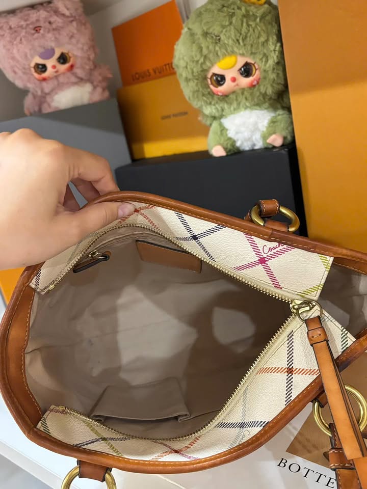 🔥🔥Coach Signature Plaid Tote size 27x34x26 – chất canvas bền đẹp phối da nâu caramel, họa tiết caro đa sắc trẻ trung mà vẫn sang trọng.🍂