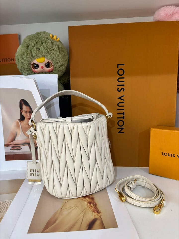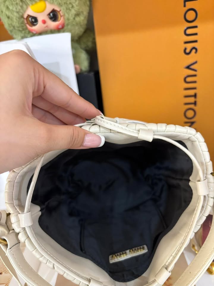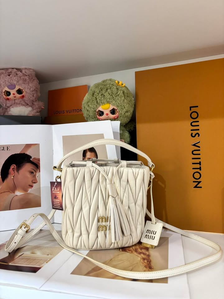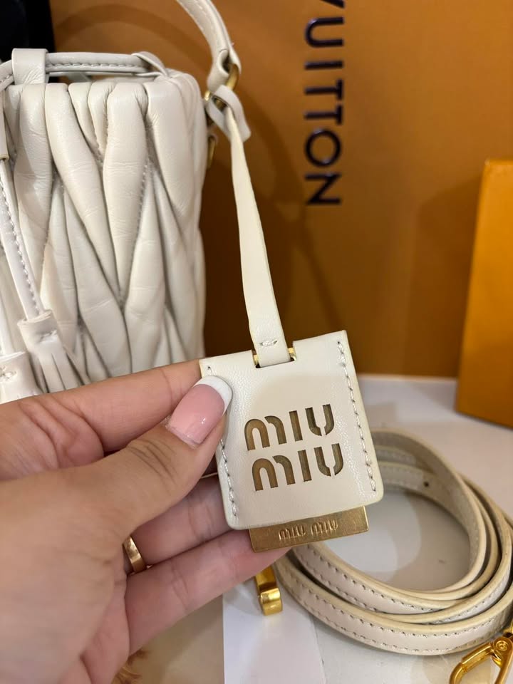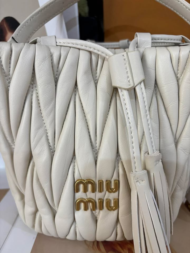 ✨Chất liệu: Da cao cấp với kỹ thuật Matelassé đặc trưng của Miu Miu, tạo hiệu ứng bề mặt mềm mại và sang trọng