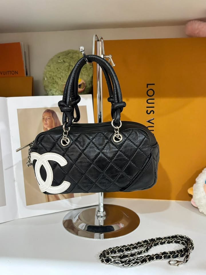 Chanel Black Quilted Leather Cambon Ligne Bowler Bag